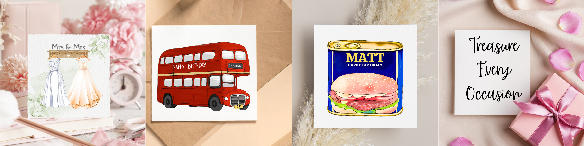 Treasured Words started in 2023 after trying (rather unsuccessfully) to find quirky and interesting cards on the high-street. When we couldn't find anything suitable to set out to start our very own card and printing company. After some trial and error we found a way to create cards which we hope people will treasure, not just throw away after celebrations end!