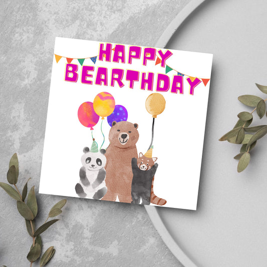 Cute Bear Birthday Card, Happy Bearthday, Card for Child