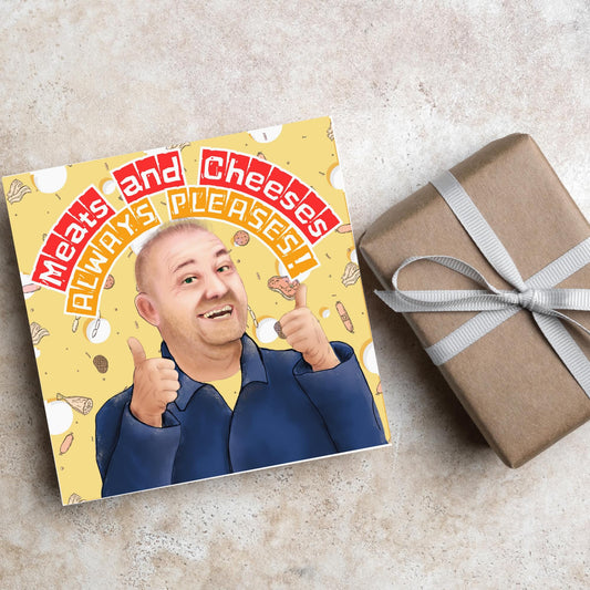 Bob Mortimer Birthday Card, Meats and Cheeses Always Pleases, Birthday Card for Him