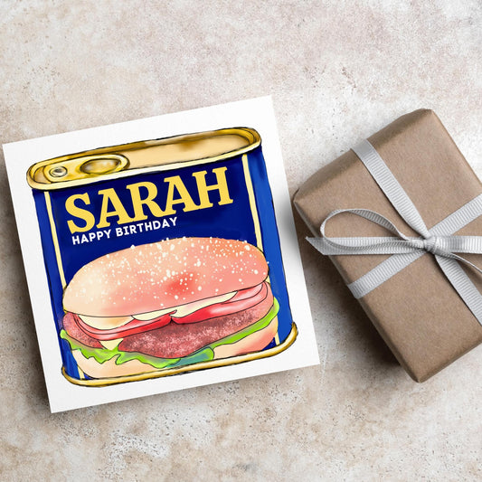 Personalised British Themed Birthday Card, Funny Birthday Card, Spam Birthday