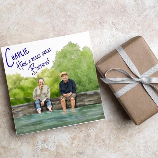 Personalised Mortimer and Whitehouse Gone Fishing Birthday Card, Birthday Card for Him, Card for Her