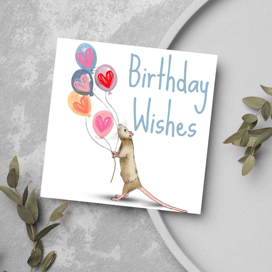 Cute Rat Birthday Card, Card with Balloon and Rat Design, Funny Cute Birthday Card with Mouse