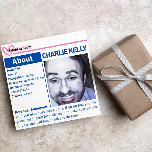 It's Always Sunny in Philadelphia Card, Charlie Kelly Dating Profile, Always Sunny Funny Birthday Card