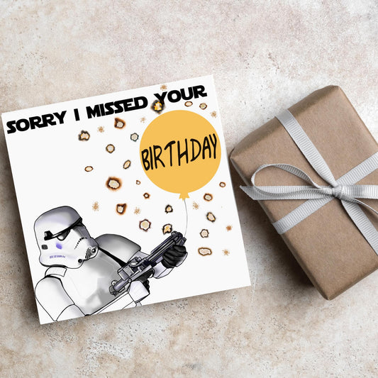 Stormtrooper Belated Birthday Card, Funny Missed Birthday Card, Sorry I Missed It Card