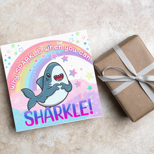 Unicorn Shark Card, Fun Card for Shark Lovers, Kawaii Rainbow Card