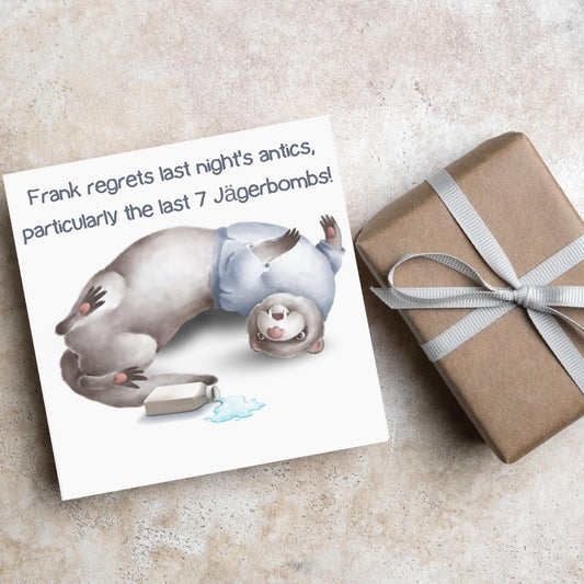 Hungover Ferret Birthday Card, Hangover Card, Ferret Card