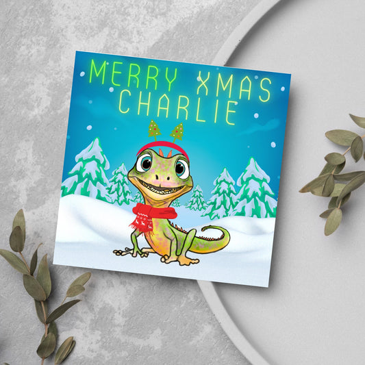 Personalised Christmas card with Lizard design - Cards for Him, Cards for Her, Cards for kids