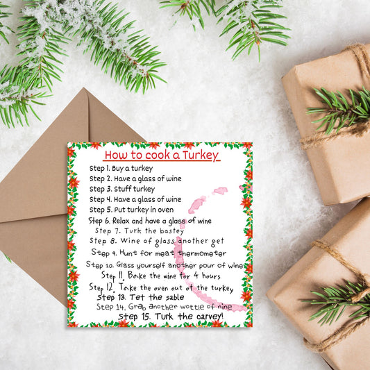 Funny Cooking Christmas Card, How to Cook a Turkey with Wine