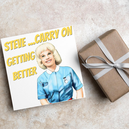 Personalised Carry on Get Well Card, Get Well Soon, Carry on Matron