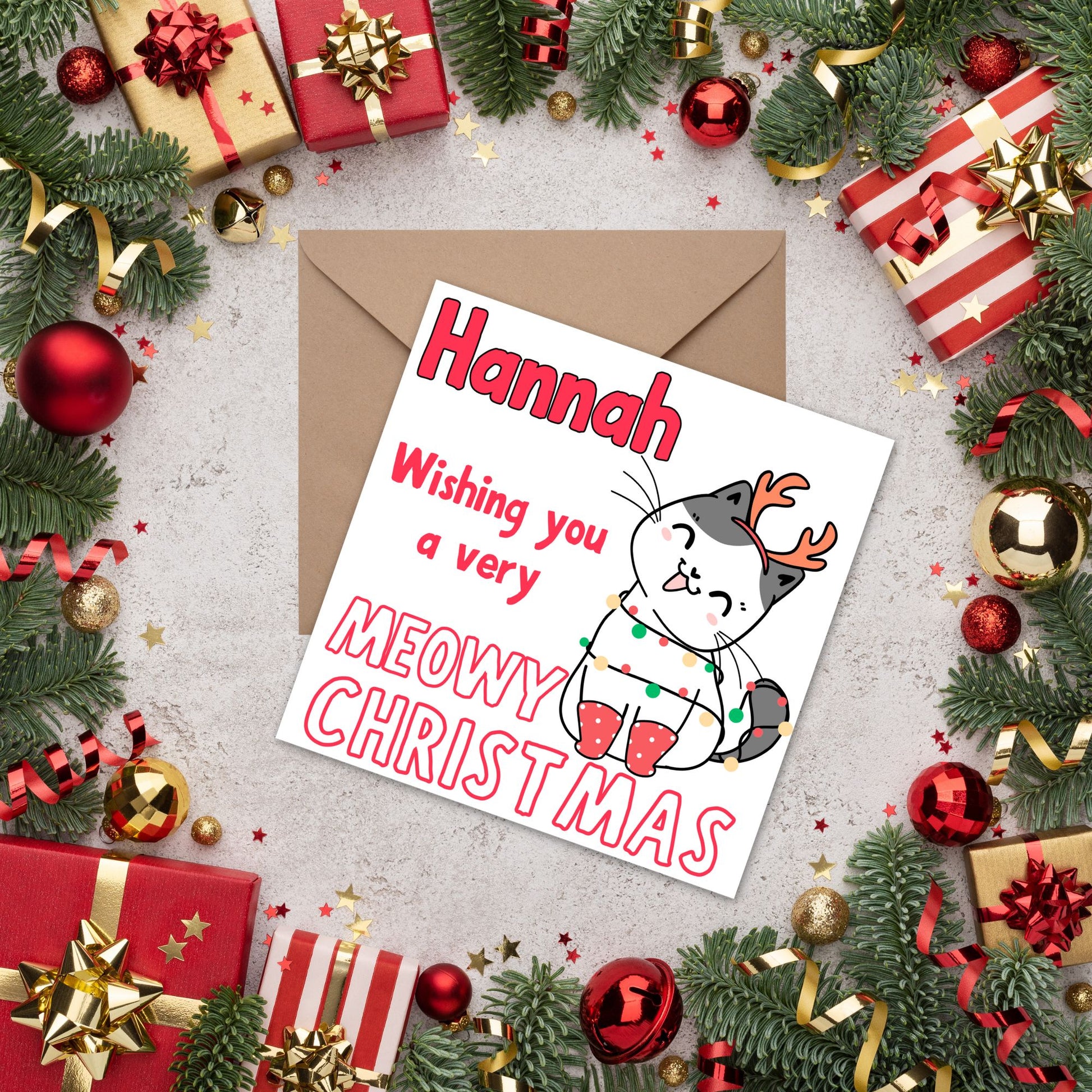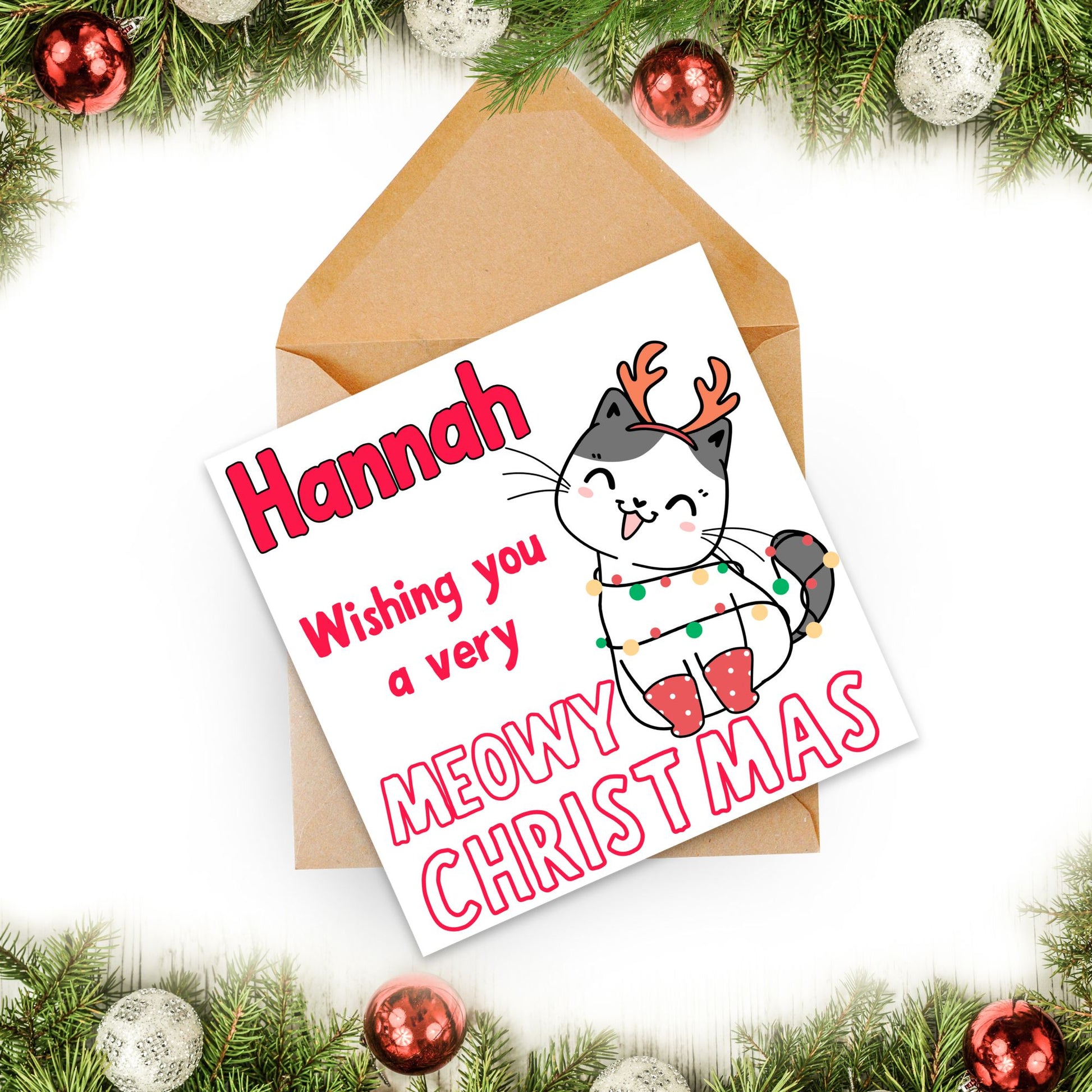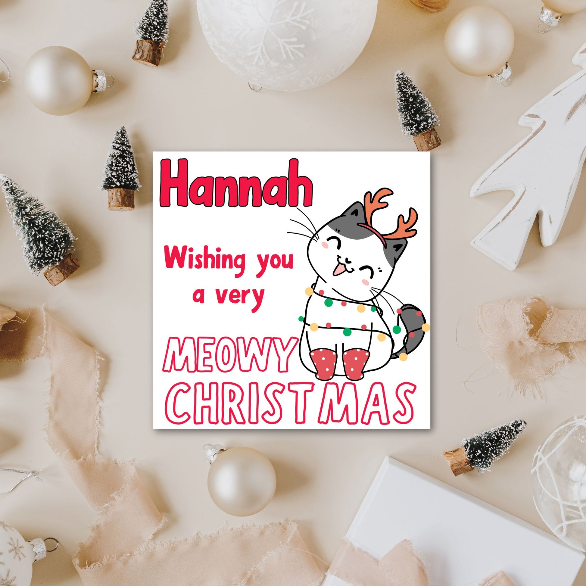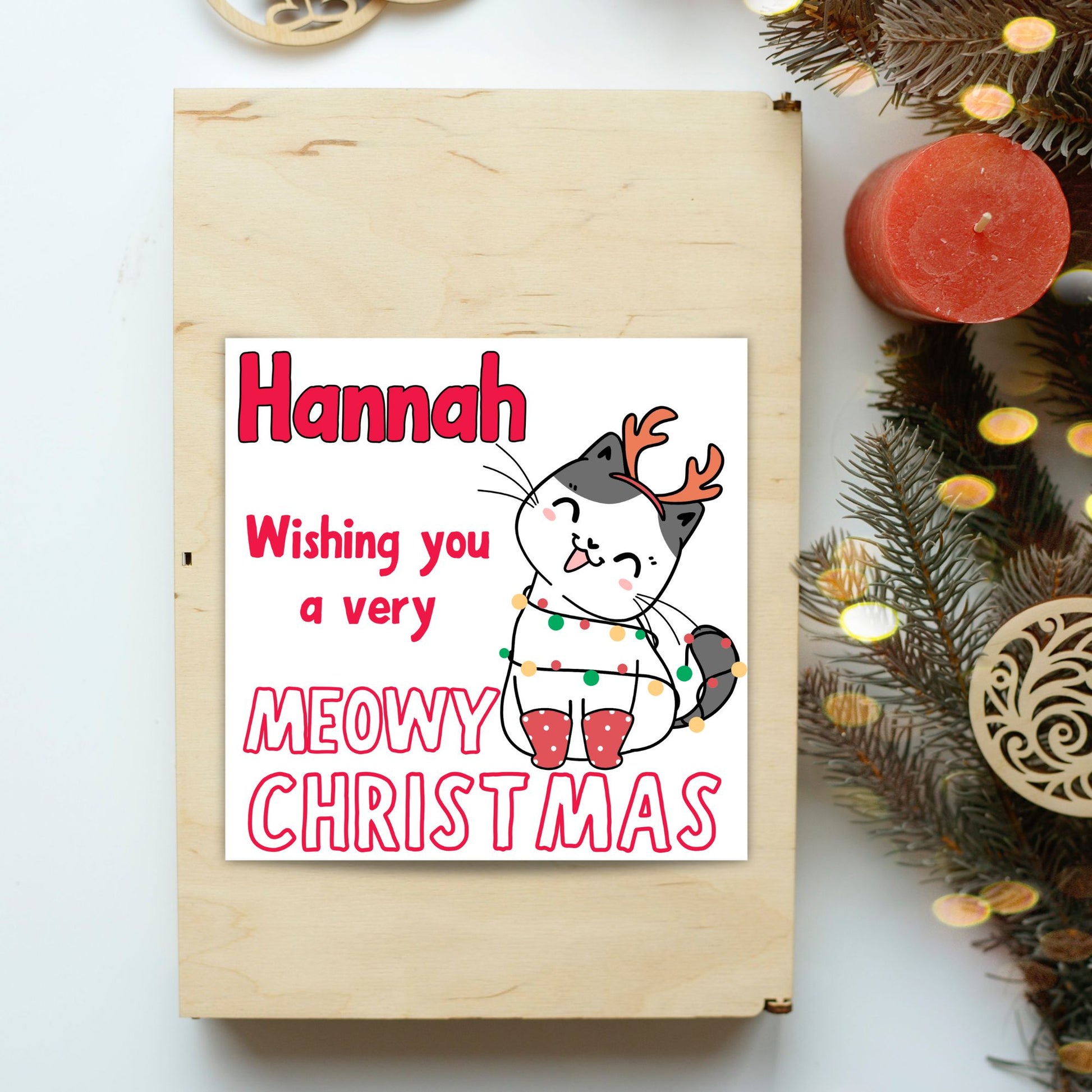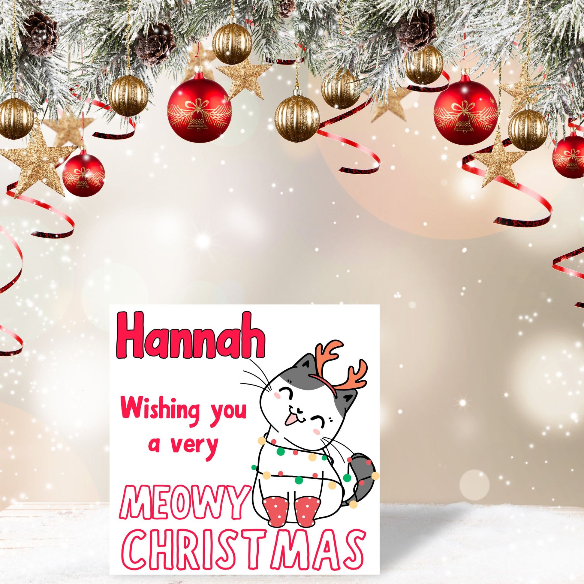 Adorable Personalised Cat Christmas card - Cat lover card - Cat christmas card