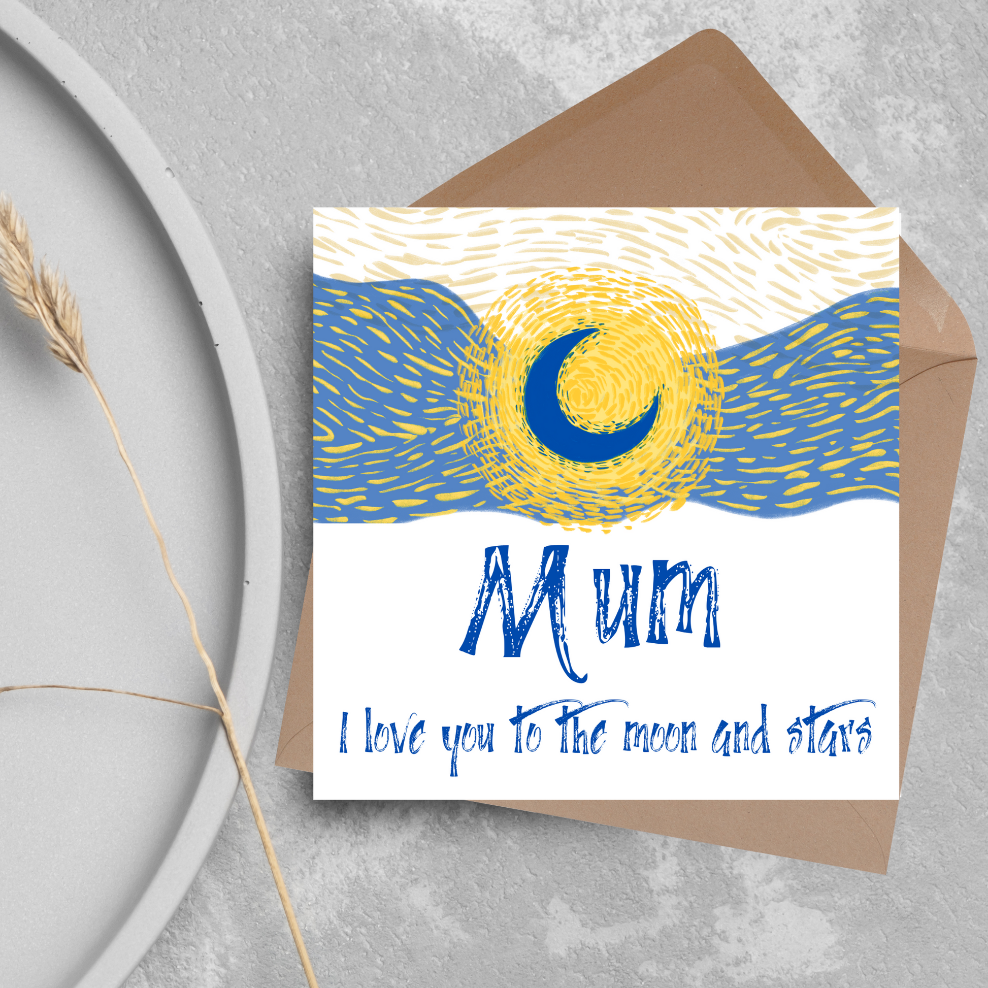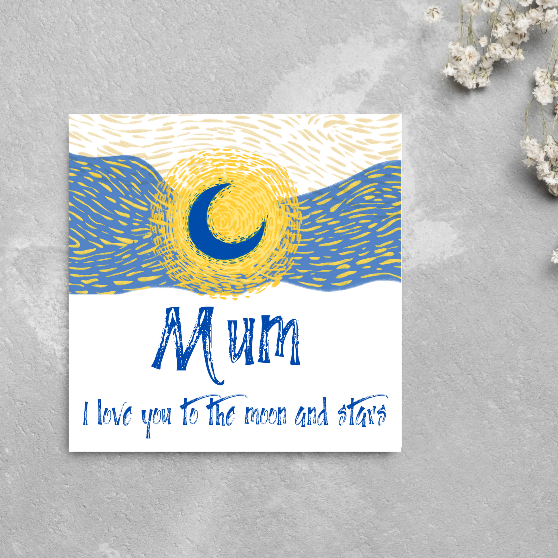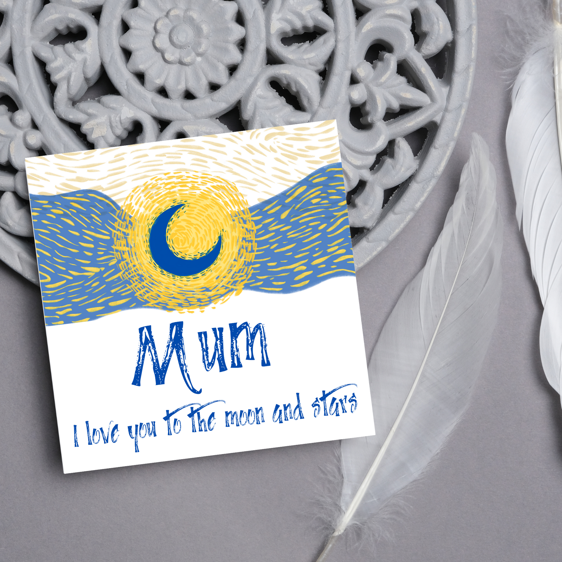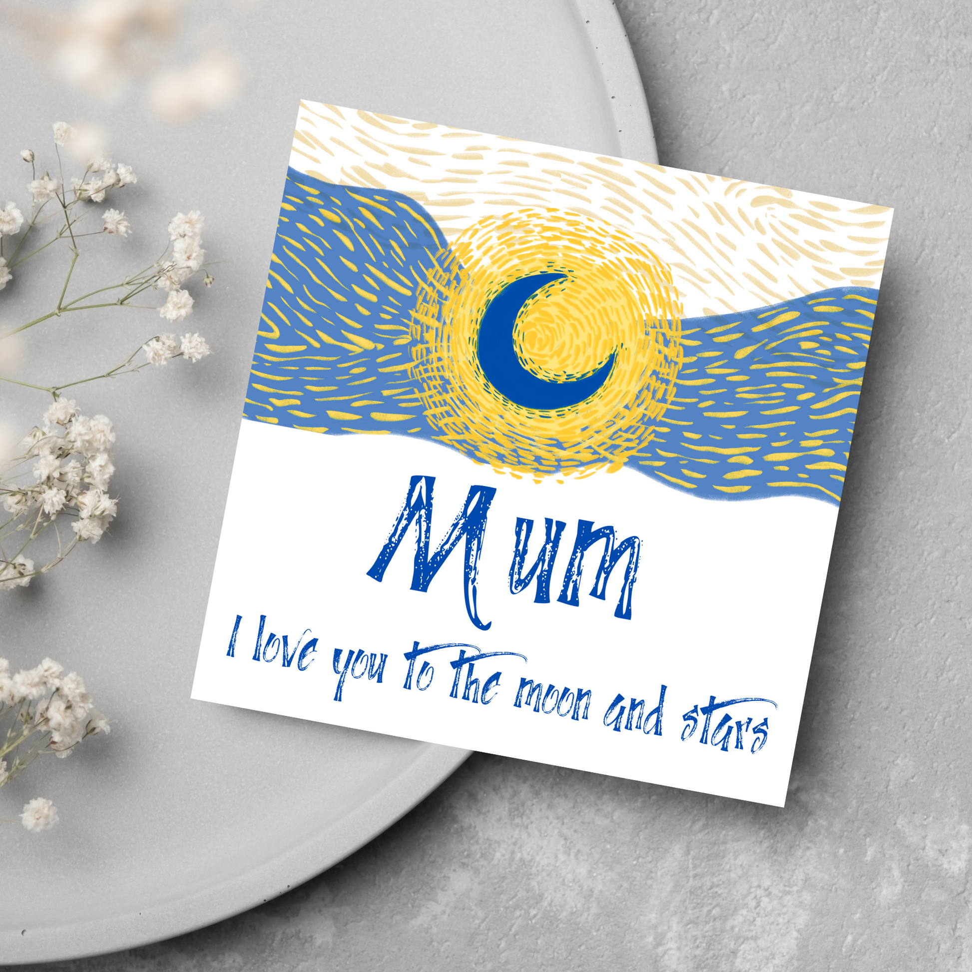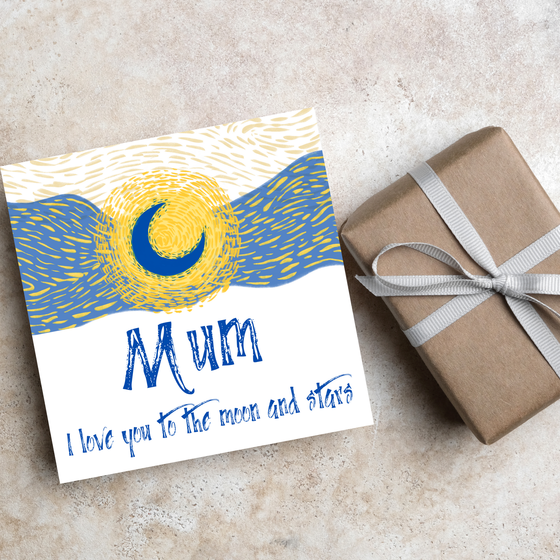 Show Mum just how much she means with this starry and heartfelt Mother’s Day card! Featuring a stunning celestial design inspired by Van Gogh, it beautifully expresses your love—to the moon and stars and beyond. A perfect keepsake for a truly special mum. ✨🌙