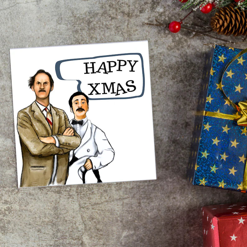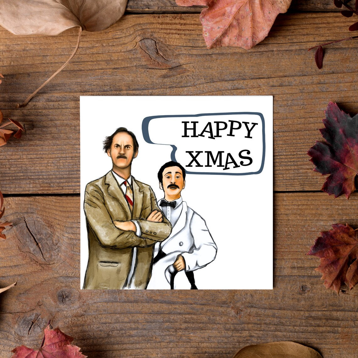 Dive into the holiday hilarity with our 14x14 Christmas Card featuring a side-splitting illustration of none other than Basil Fawlty from the iconic Fawlty Towers!