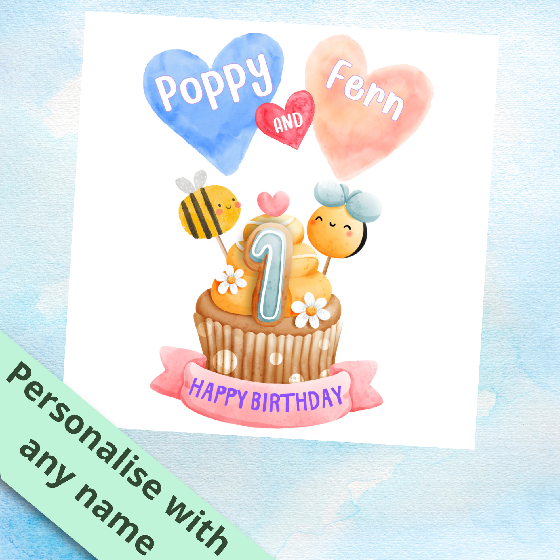 Celebrate the most special milestone in style with our enchanting Twins' First Birthday Card! This heartwarming card is the perfect way to mark the joy of not one, but two little bundles of happiness turning one year old. It's double the love, double the fun, and double the cuteness!