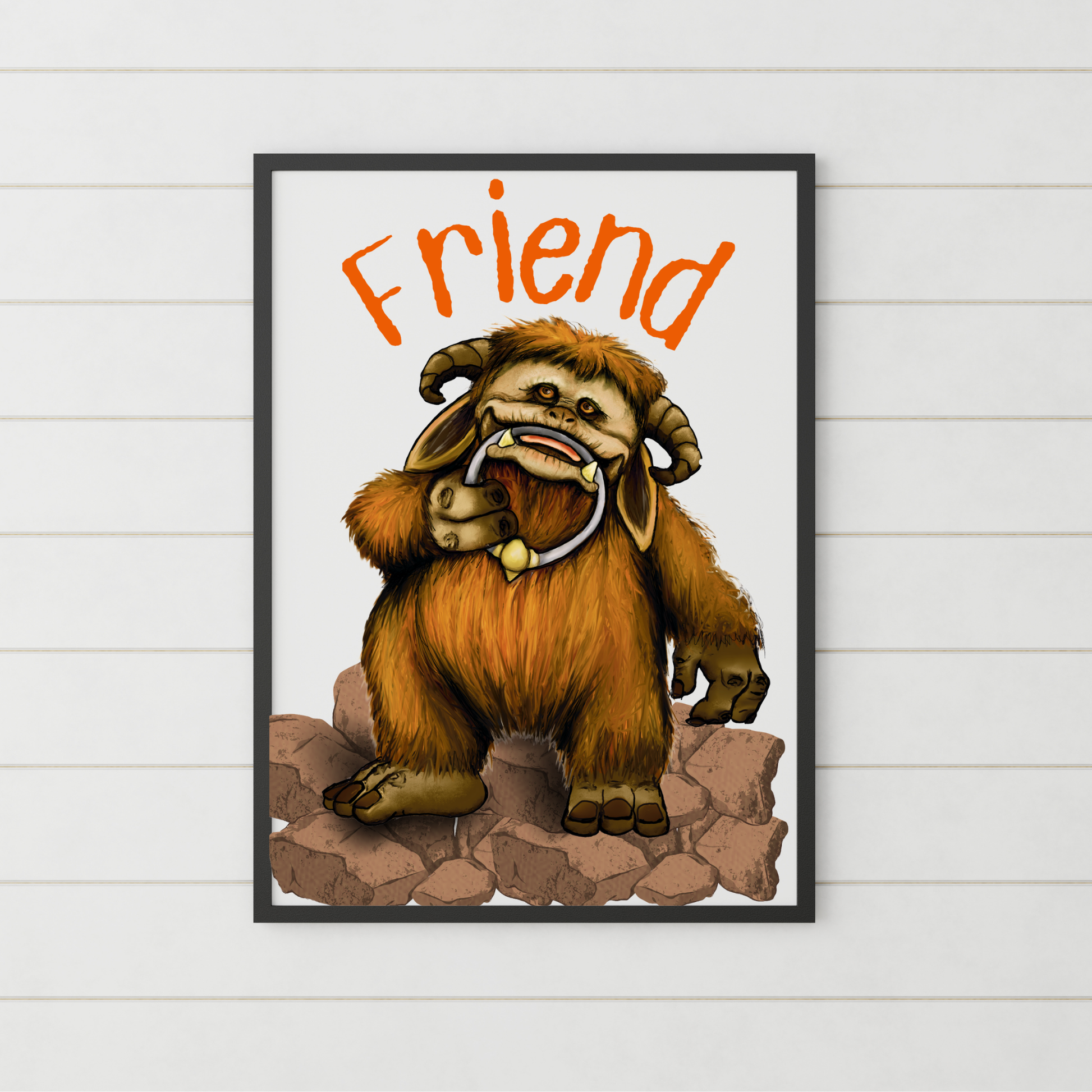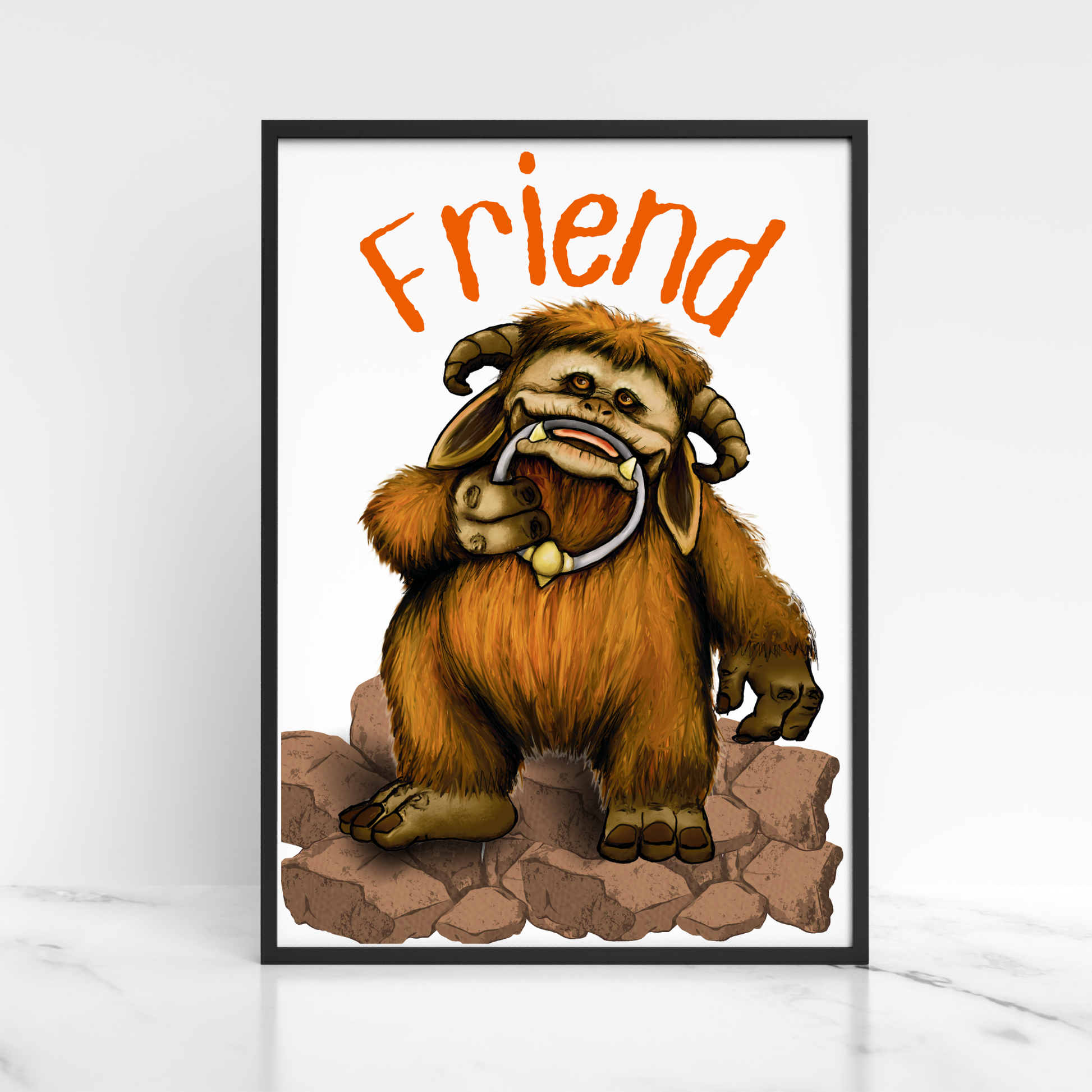 Labyrinth Ludo Poster, A4 Print, High Quality Wall Art, Labyrinth Movie Poster, Jim Henson Artwork, Ludo Friend, 80's Movie Poster, Cute Art