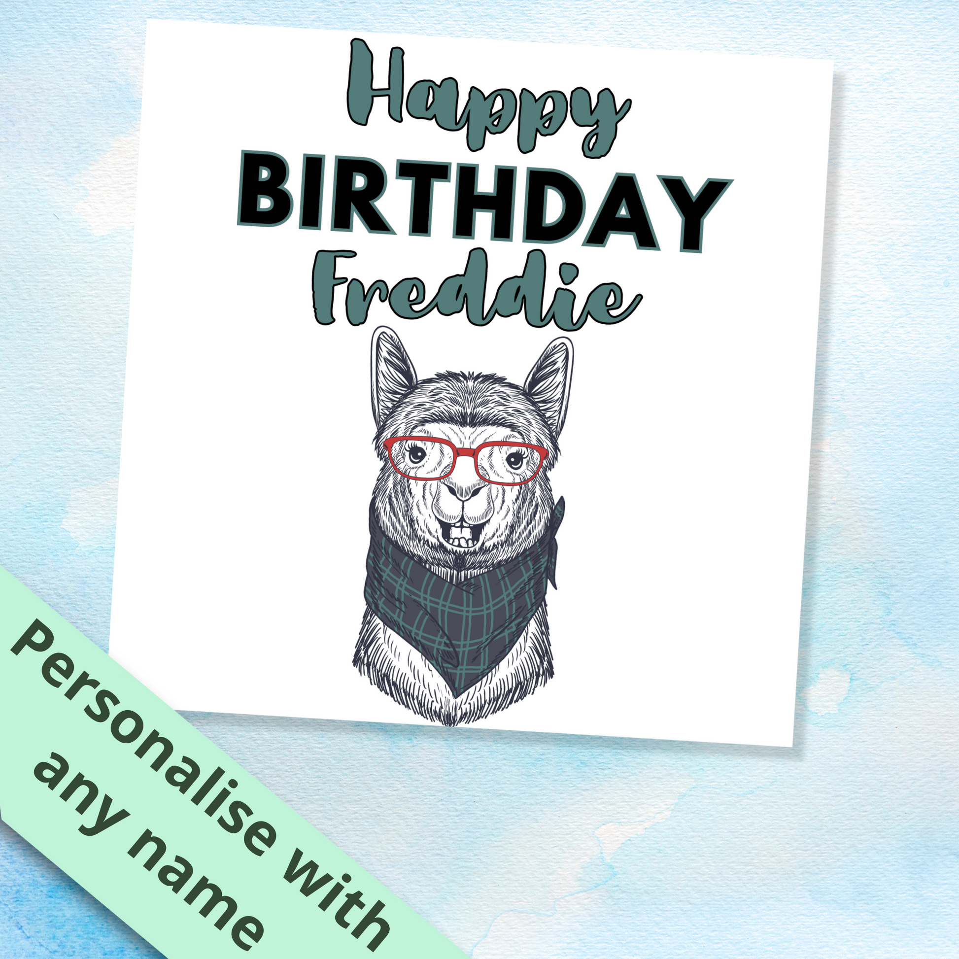 Happy Birthday funny Llama Card. Say happy birthday to your local llama lover with our made to order card.