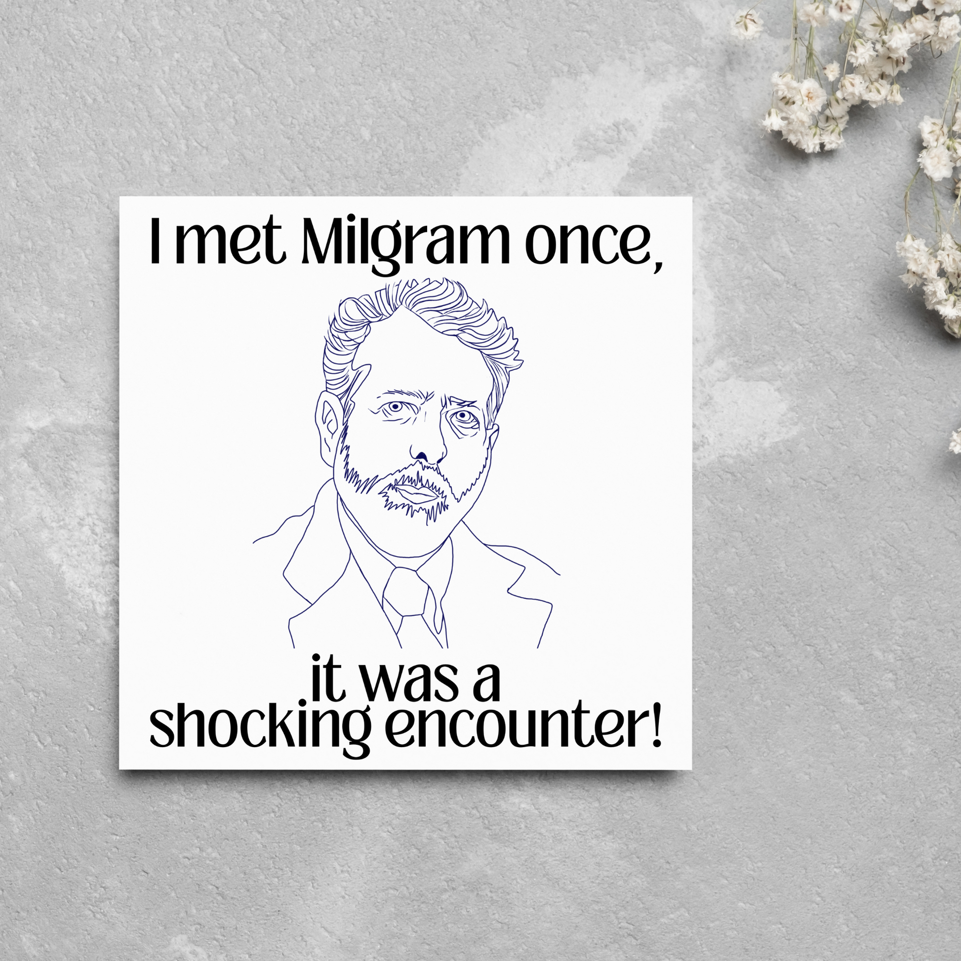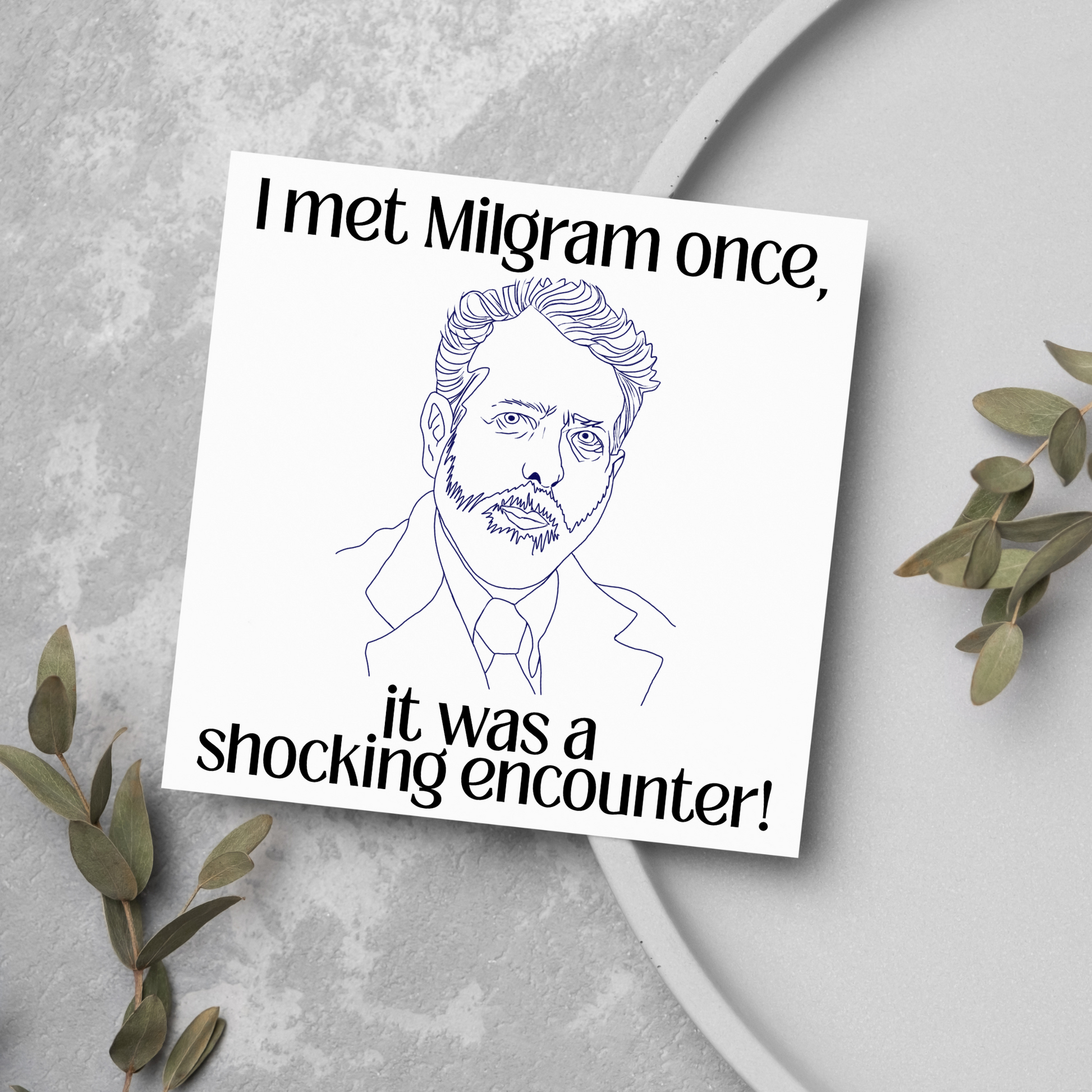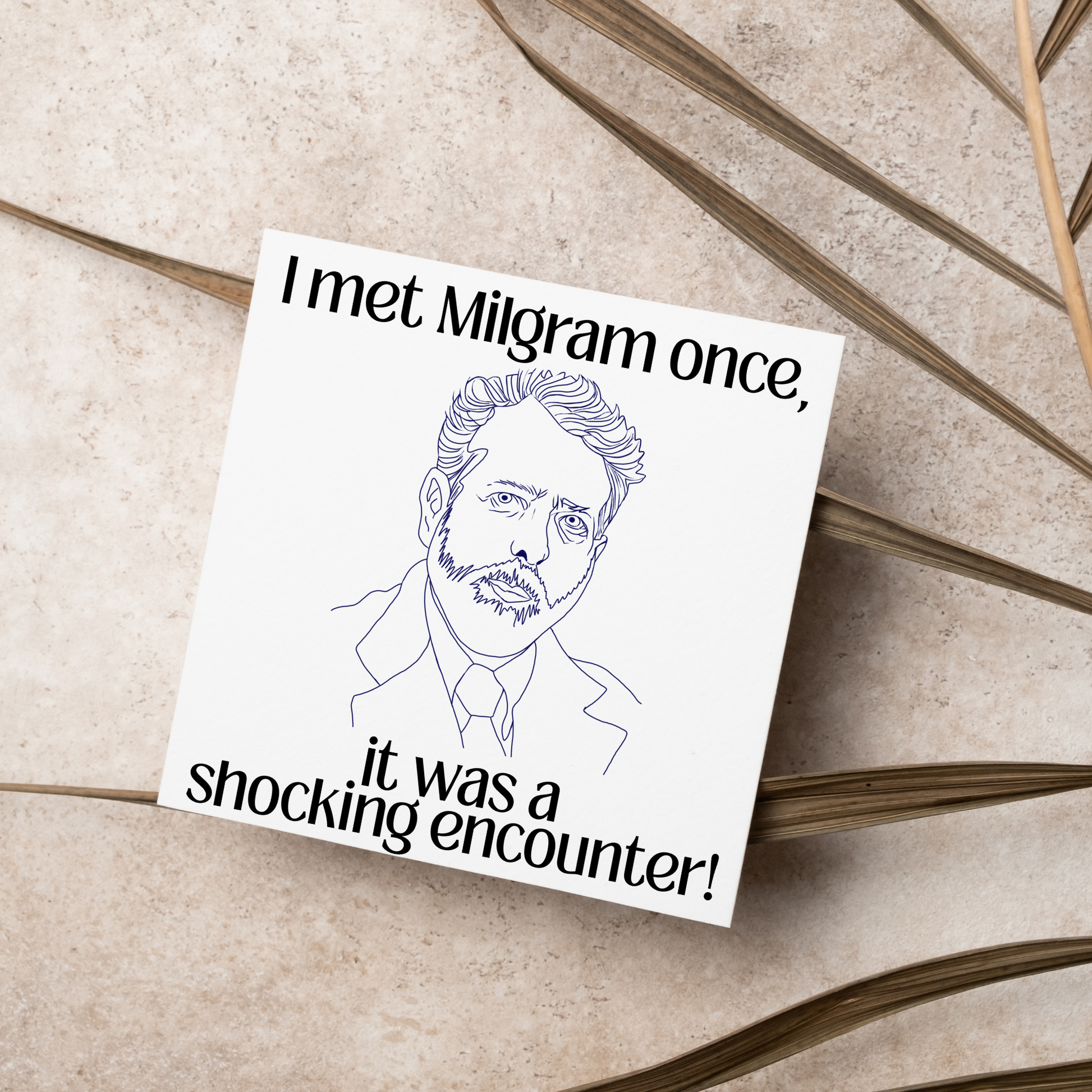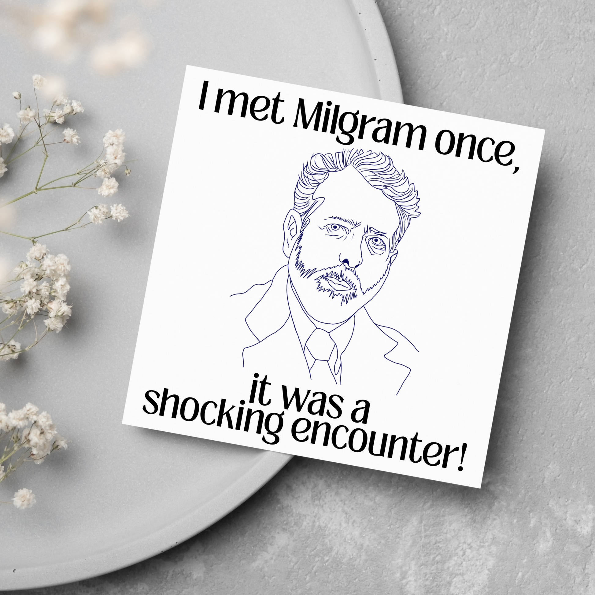 Introducing our uniquely designed birthday card, featuring a whimsical illustration of Stanley Milgram accompanied by the witty caption: